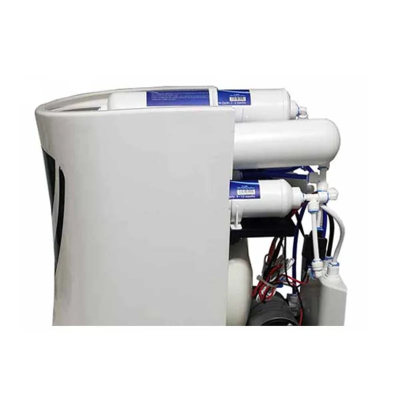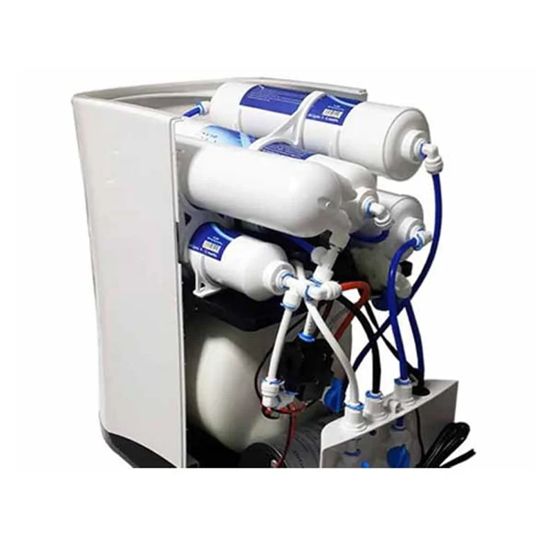 اين دستگاه مطابق با تكنولوژي RO ( اسمز معكوس ) براي محل هايي كه آب ورودي داراي مقادير بيش از حد نرمال جامدات محلول مي باشد طراحي شده است.اين دستگاه علاوه بر حذف ذرات معلق، گازهاي شيميايي، تركيبات مضر موجود در آب (نظير نيترات، آرسنيك، فلزات سنگين و … ) ، قادر است كه سنگيني (TDS) و سختي (TH) آب را نيز تاحد قابل توجهي كاهش دهد.
