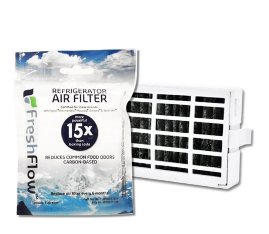 فیلتر هوای یخچال FreshFlow W10311524 - AIR1 فیلتر هوا اجازه می دهد که هوا به طور فعال از طریق فیلتر عبور کند و باعث خنثی کردن بو و باکتری ها شود. این بوی ها 15 برابر بهتر از نوشابه های گازدار است. فیلتر باید در پشت دیافراگم در امتداد دیوار داخلی عقب در بالای محفظه یخچال نصب شود.