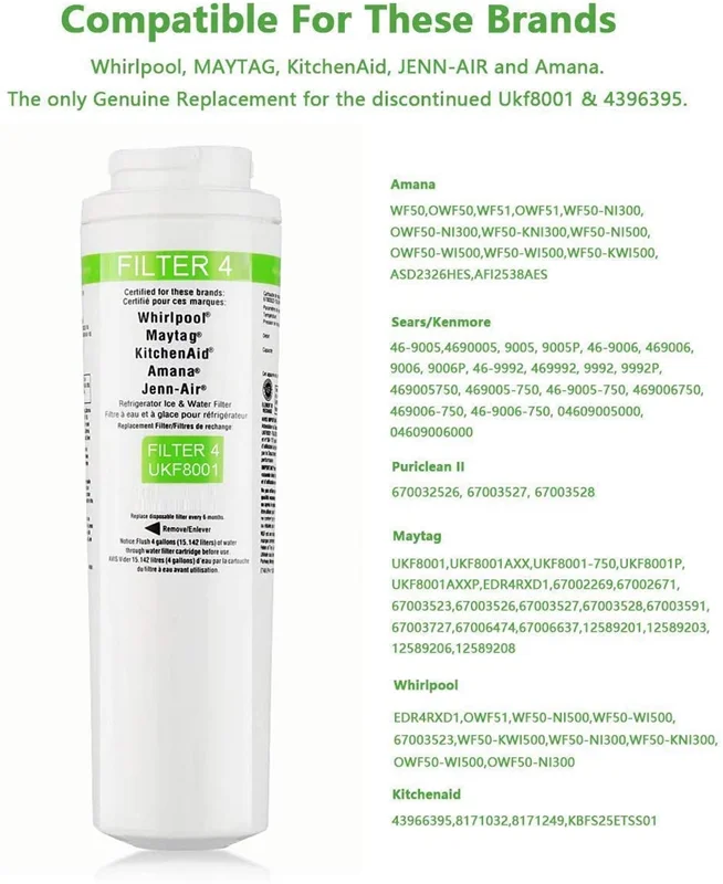 - سازگار با مدلهای Maytag, Amana – UKF8001AXX, UK... Kenmore, Sears – 46-9005, 4690... KitchenAid: 4396395, 8171032,...